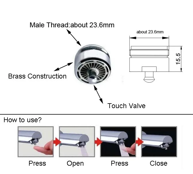 Этот аэратор предназначен для сокращения ненужного расхода воды (мытье рук, чистка зубов, бритье и т. д.) из ваших кранов. Технические характеристики: Материал: хромированная латунь; : 6 л/мин.